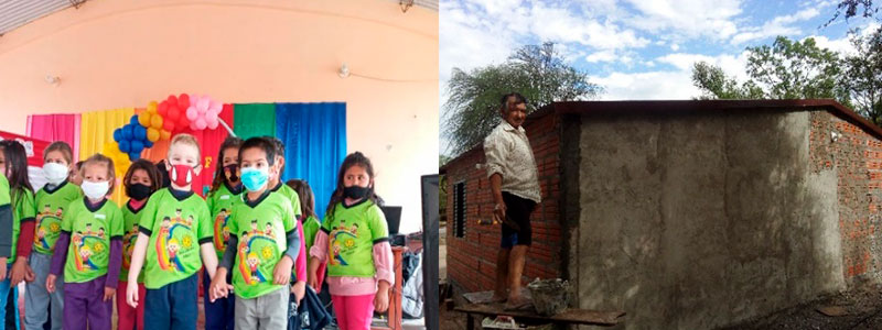 Apoyo a las escuelas de las dos comunidades cercanas en actividades recreativas y eventos varios. Acompañamiento a nuestros colaboradores en la mejora de sus viviendas.